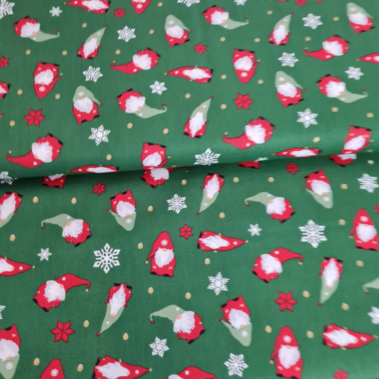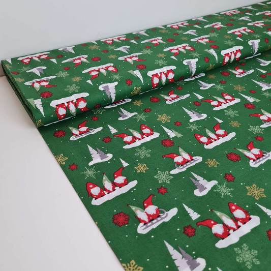 RESTSTÜCK 40 cm Baumwollwebware | Wichtel auf Schnee | Grün