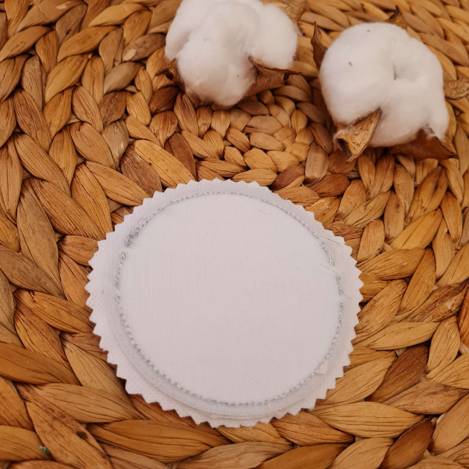 Bügelvlies: Die Rückseite wird mit Vliesofix versehen. Dieses dient dazu, dass Du den Button aufbügeln kannst.