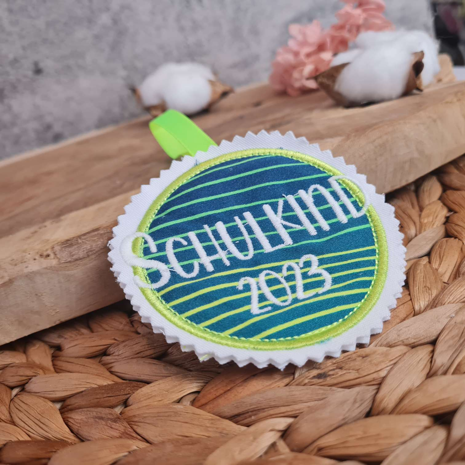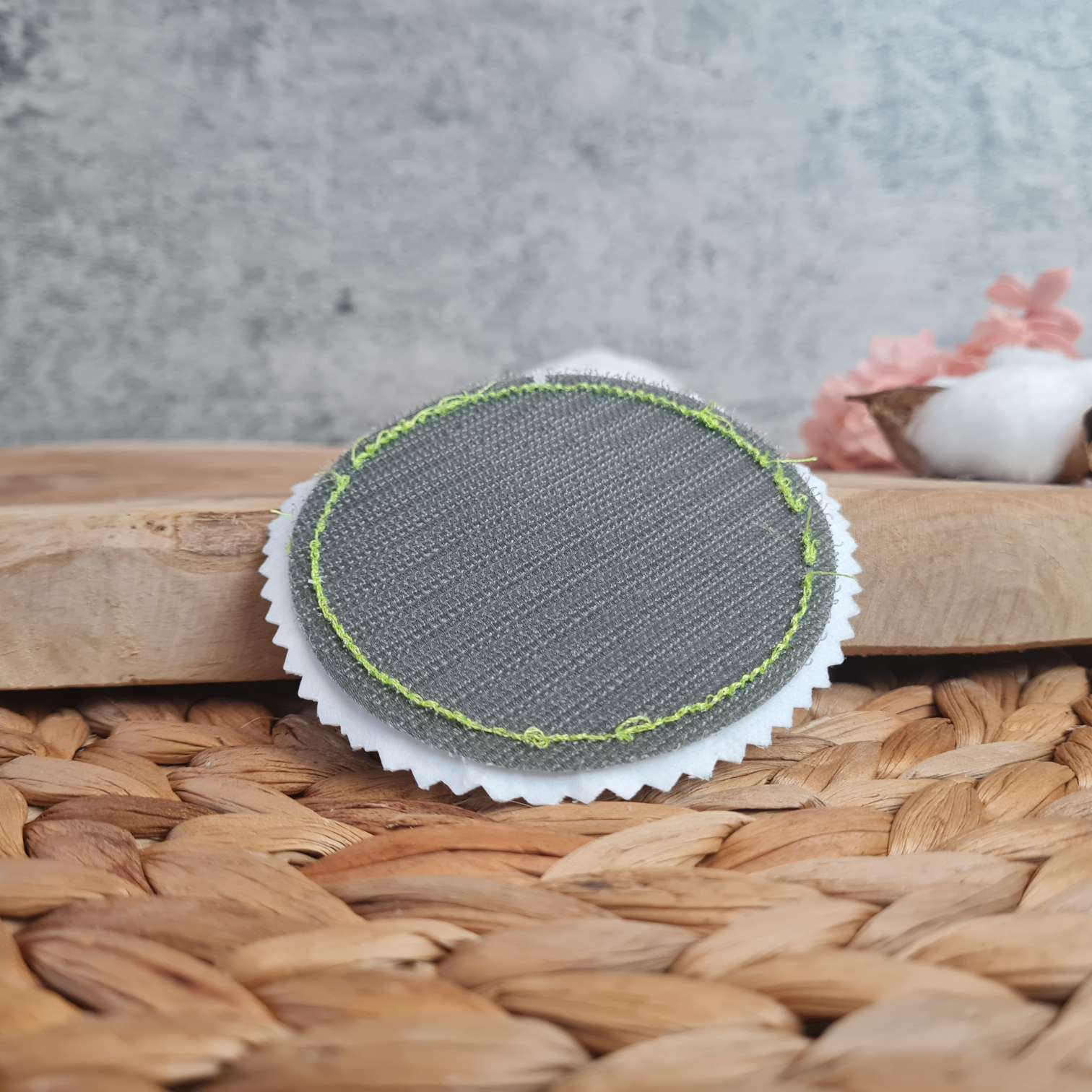 Klettband: Die Rückseite wird dann mit Klettband versehen, sodass Du die Applikation als Button auf zB dem Ergobag nutzen kannst.
