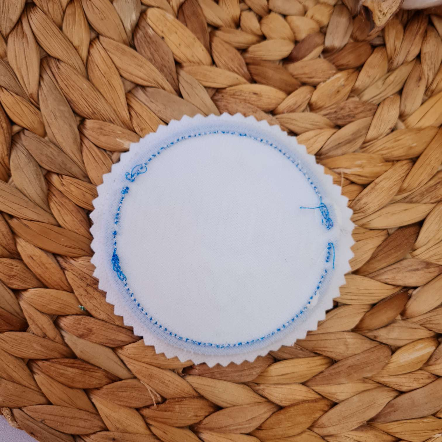 Bügelvlies: Die Rückseite wird mit Vliesofix versehen. Dieses dient dazu, dass Du den Button aufbügeln kannst.