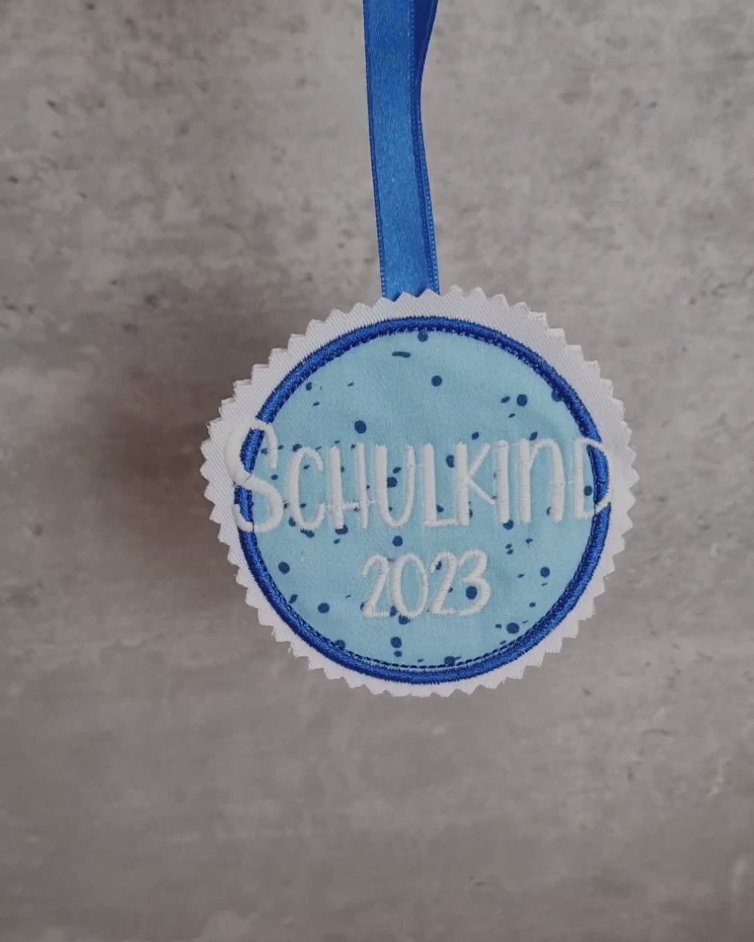 Klettband: Die Rückseite wird dann mit Klettband versehen, sodass Du die Applikation als Button auf zB dem Ergobag nutzen kannst.
