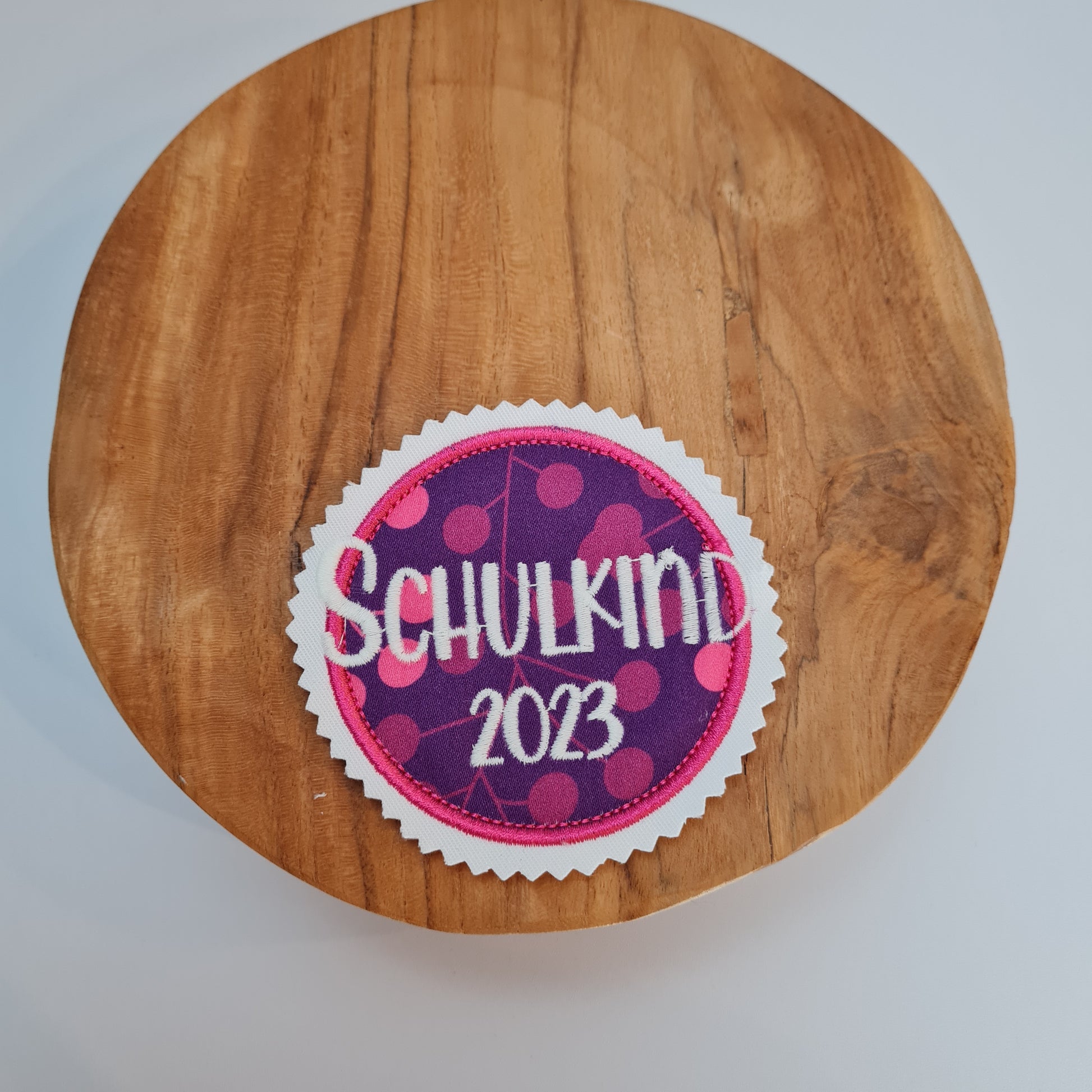 Klettband: Die Rückseite wird dann mit Klettband versehen, sodass Du die Applikation als Button auf zB dem Ergobag nutzen kannst.