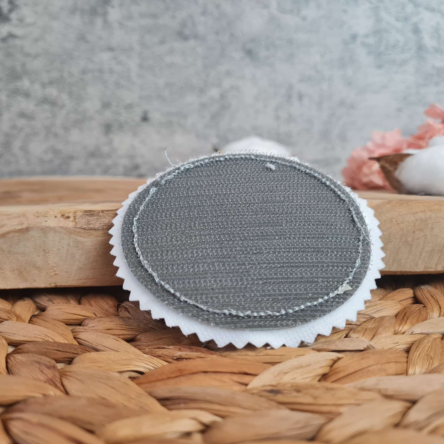 Bügelvlies: Die Rückseite wird mit Vliesofix versehen. Dieses dient dazu, dass Du den Button aufbügeln kannst.