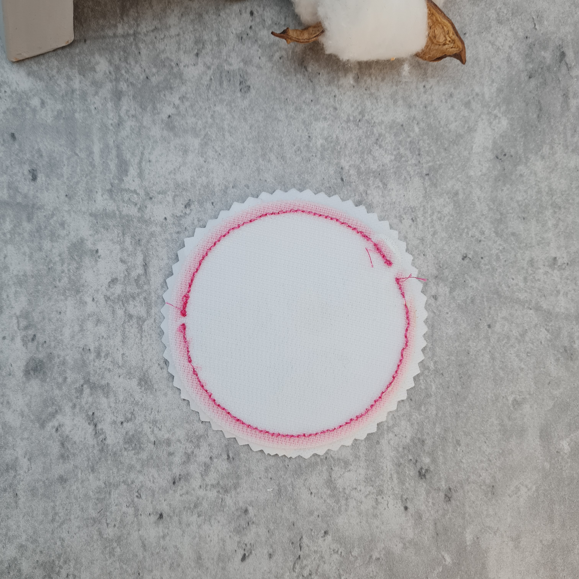 Bügelvlies: Die Rückseite wird mit Vliesofix versehen. Dieses dient dazu, dass Du den Button aufbügeln kannst.
