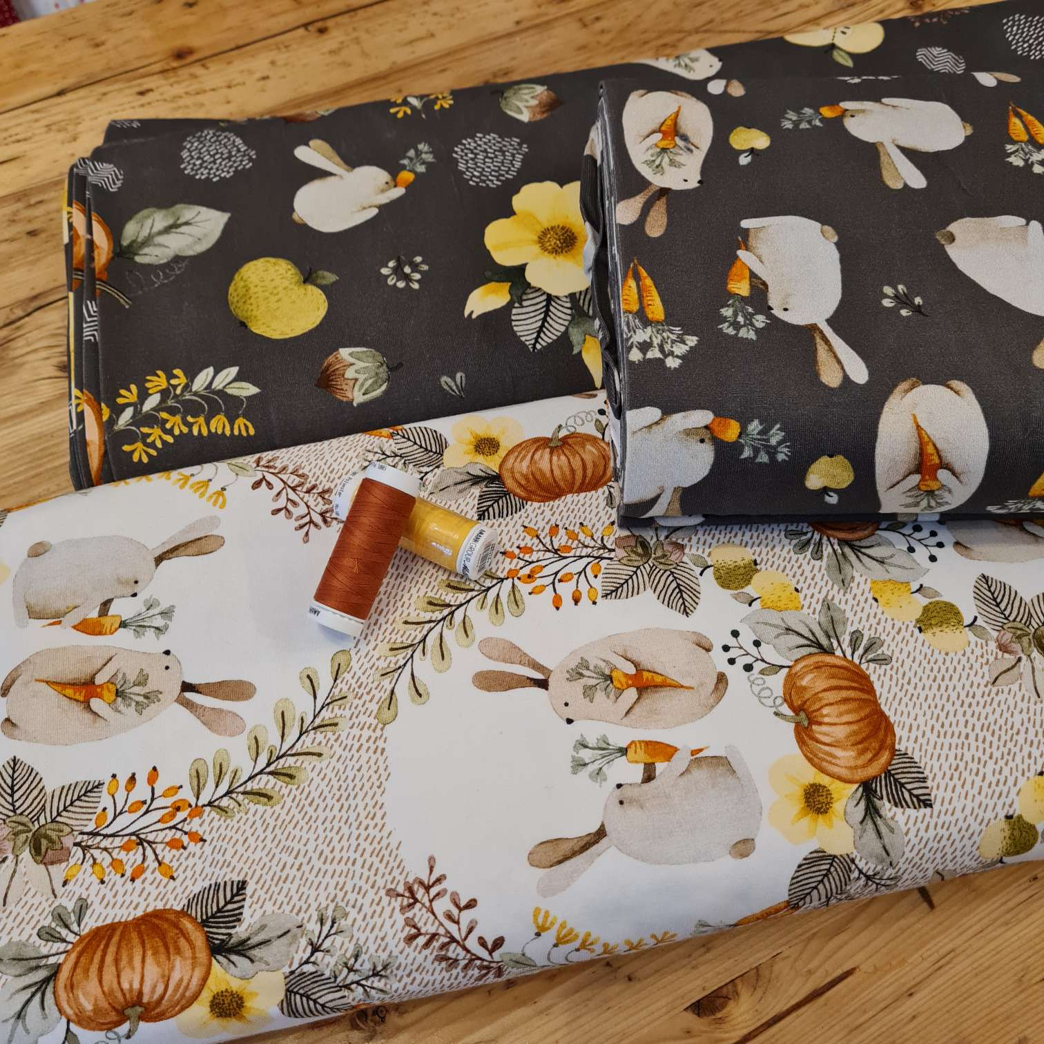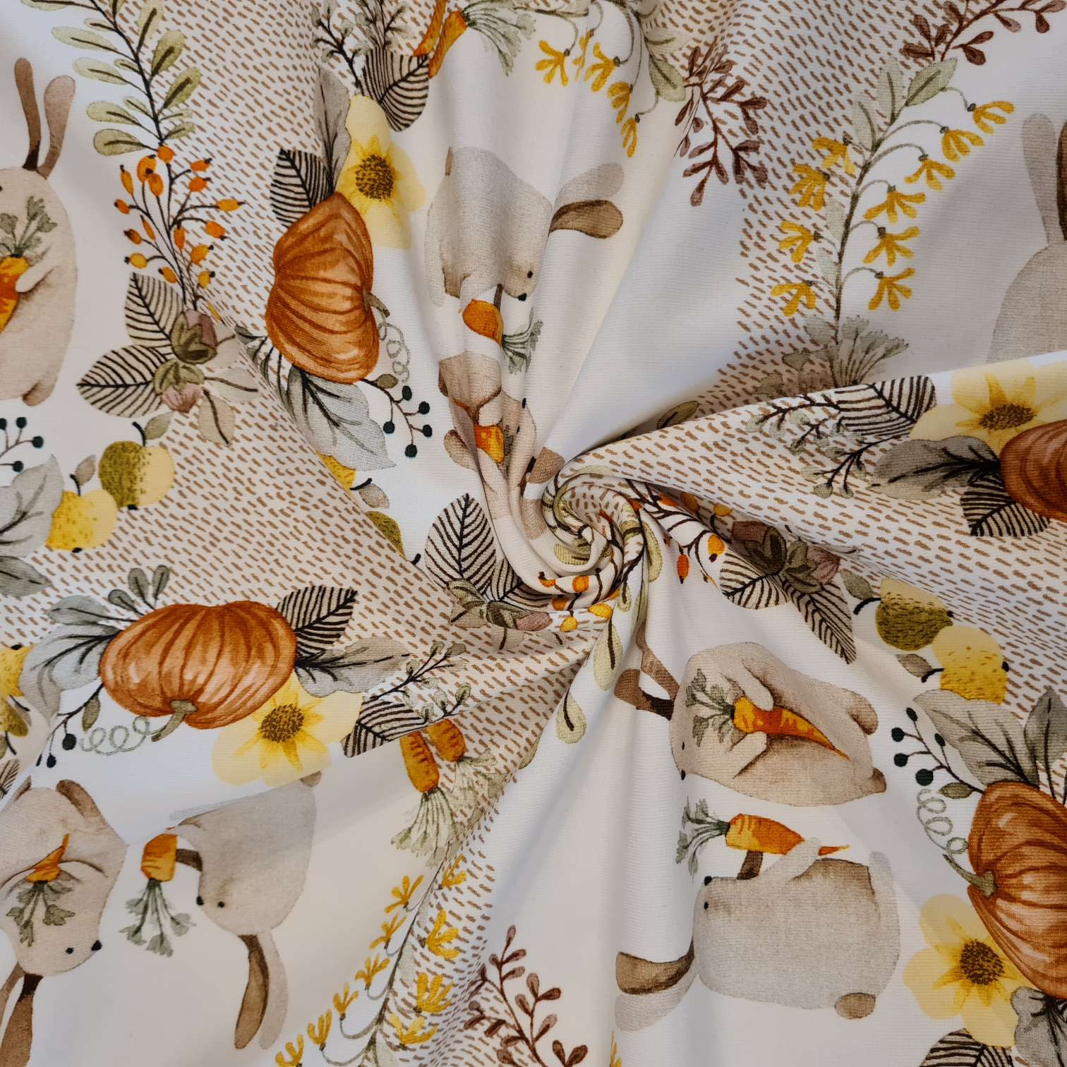 Baumwolljersey | Hasen & Kürbisse | Beige
