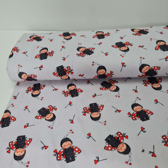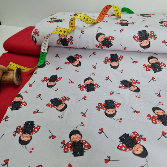 Schöner weicher Baumwolljersey mit dem Motivdruck Käferchen Glück von Emmapünktchen.