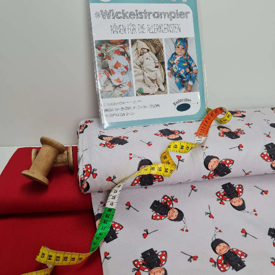 Perfekt kombiniert mit einem uni Jersey oder roter Jersey mit weißen Punkten wird das Nähprojekt aus diesem Stoff zum absoluten Hingucker.