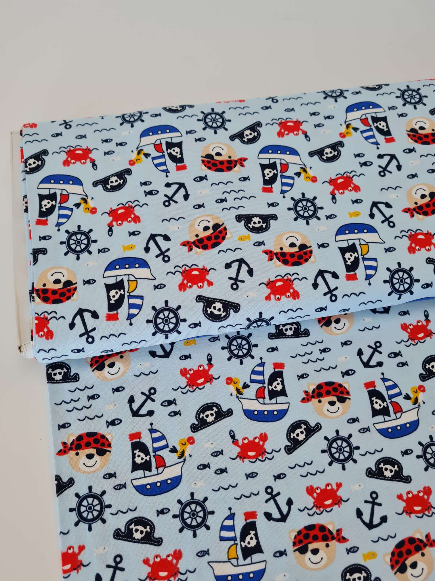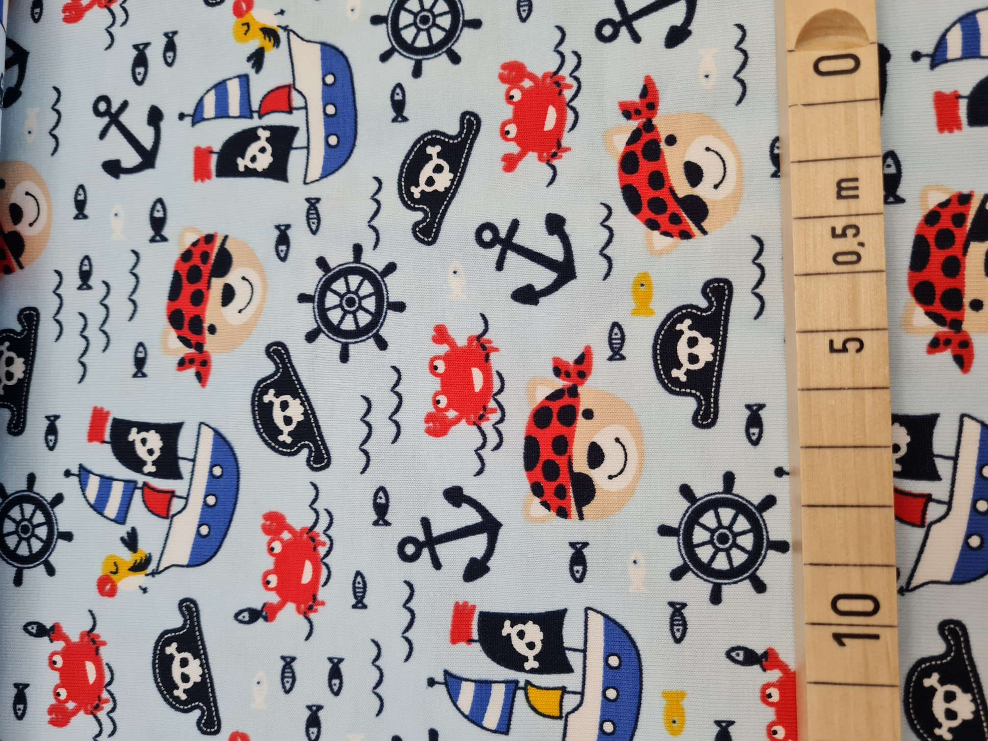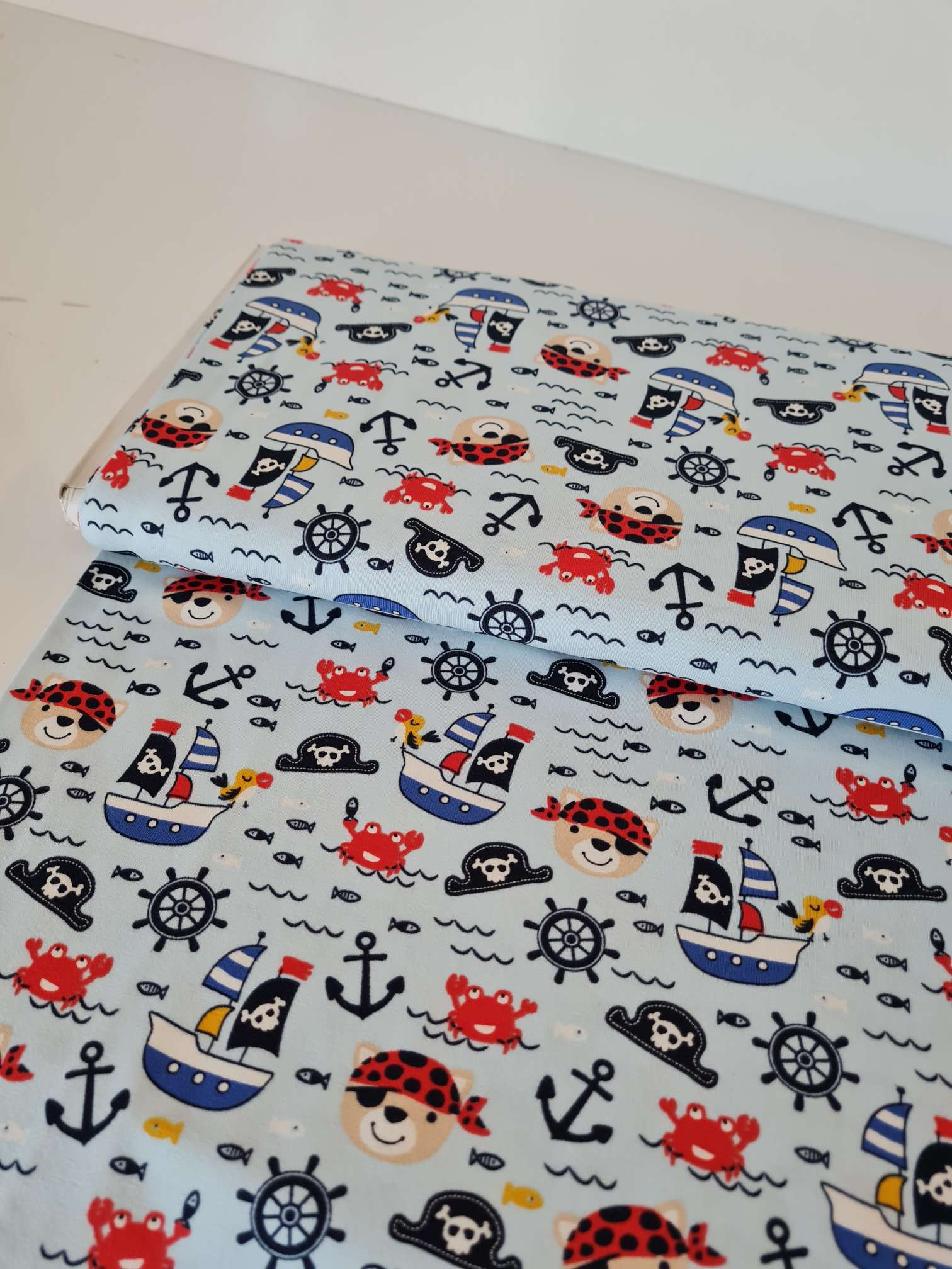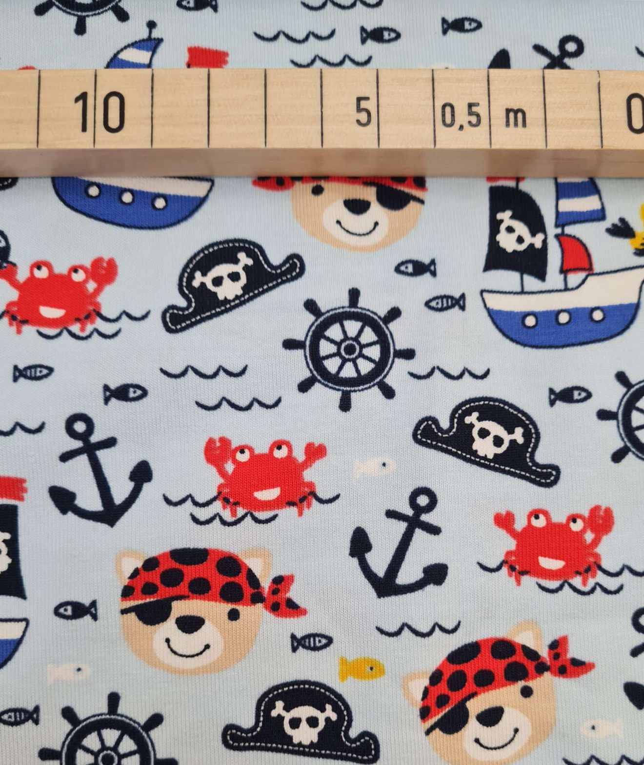 50 cm Abschnitte Baumwolljersey | Piraten | Hellblau