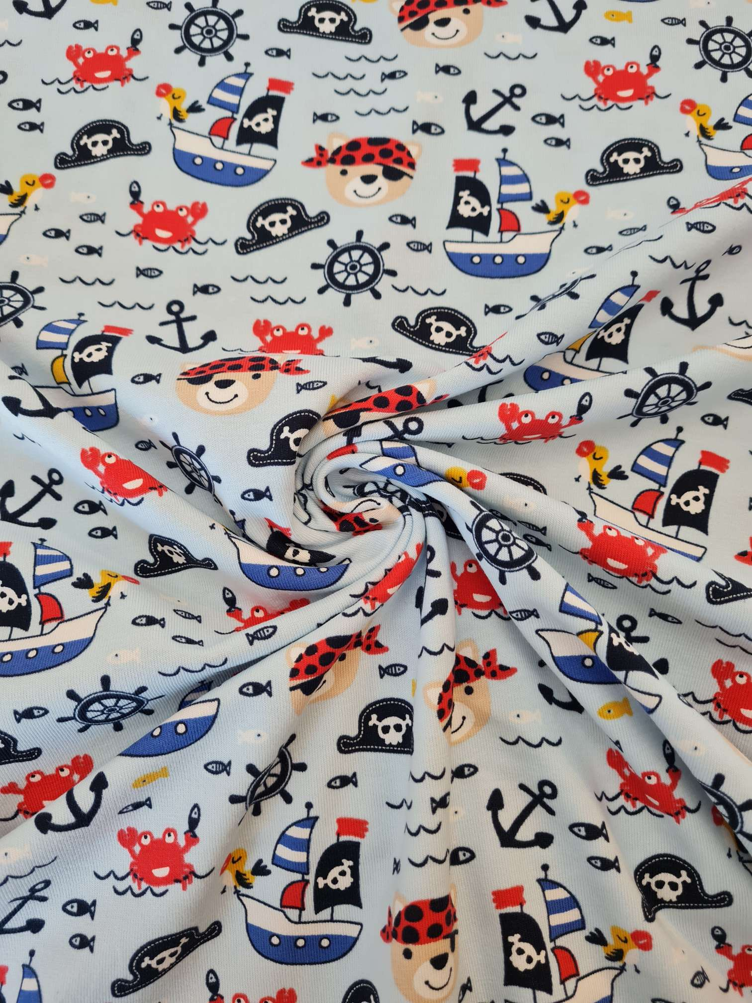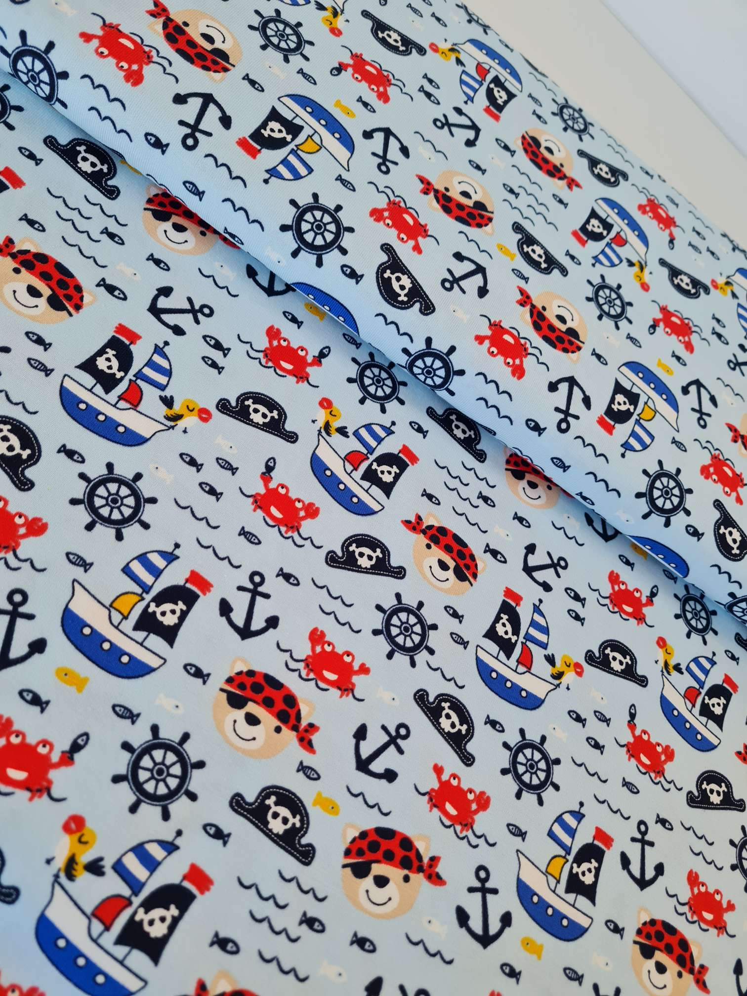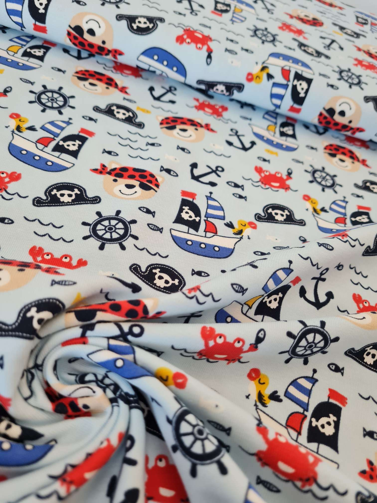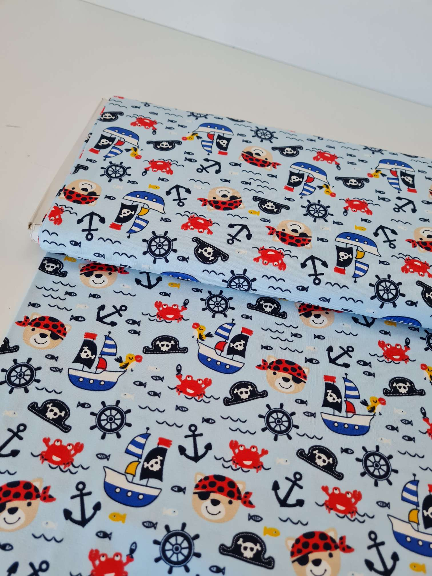 50 cm Abschnitte Baumwolljersey | Piraten | Hellblau