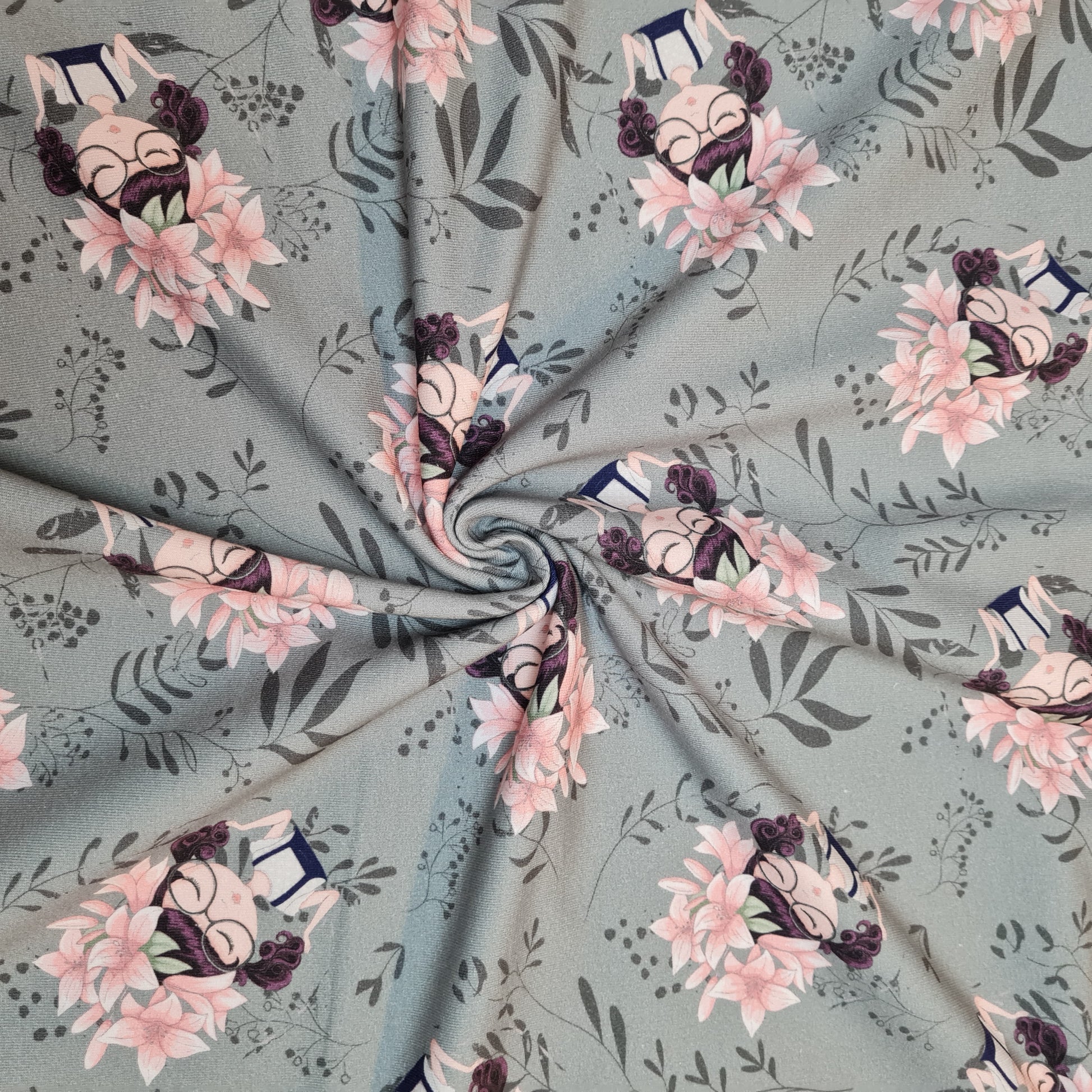 FrenchTerry | Blumenmädchen | Graugrün