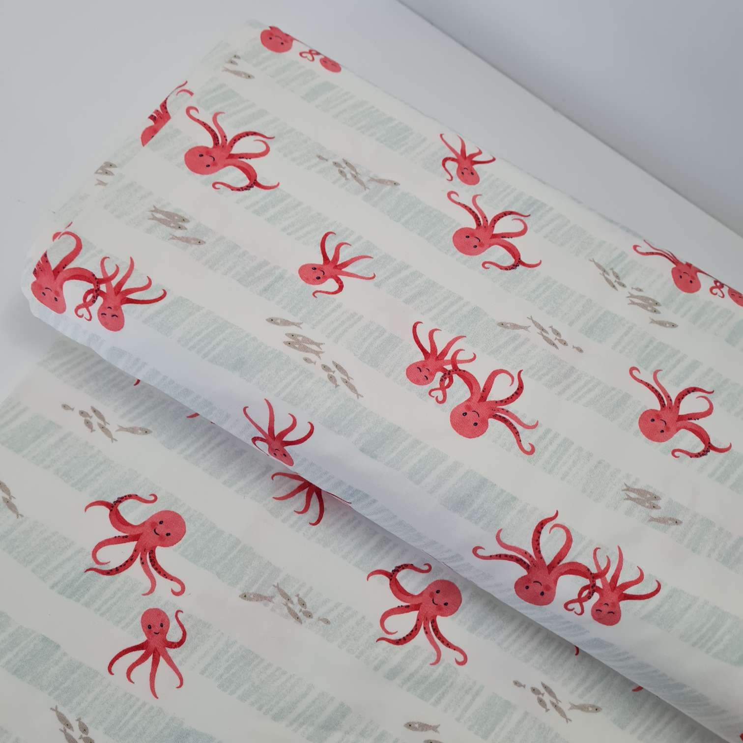 Baumwolljersey | Oktopus | Nautical Baby | Weiß