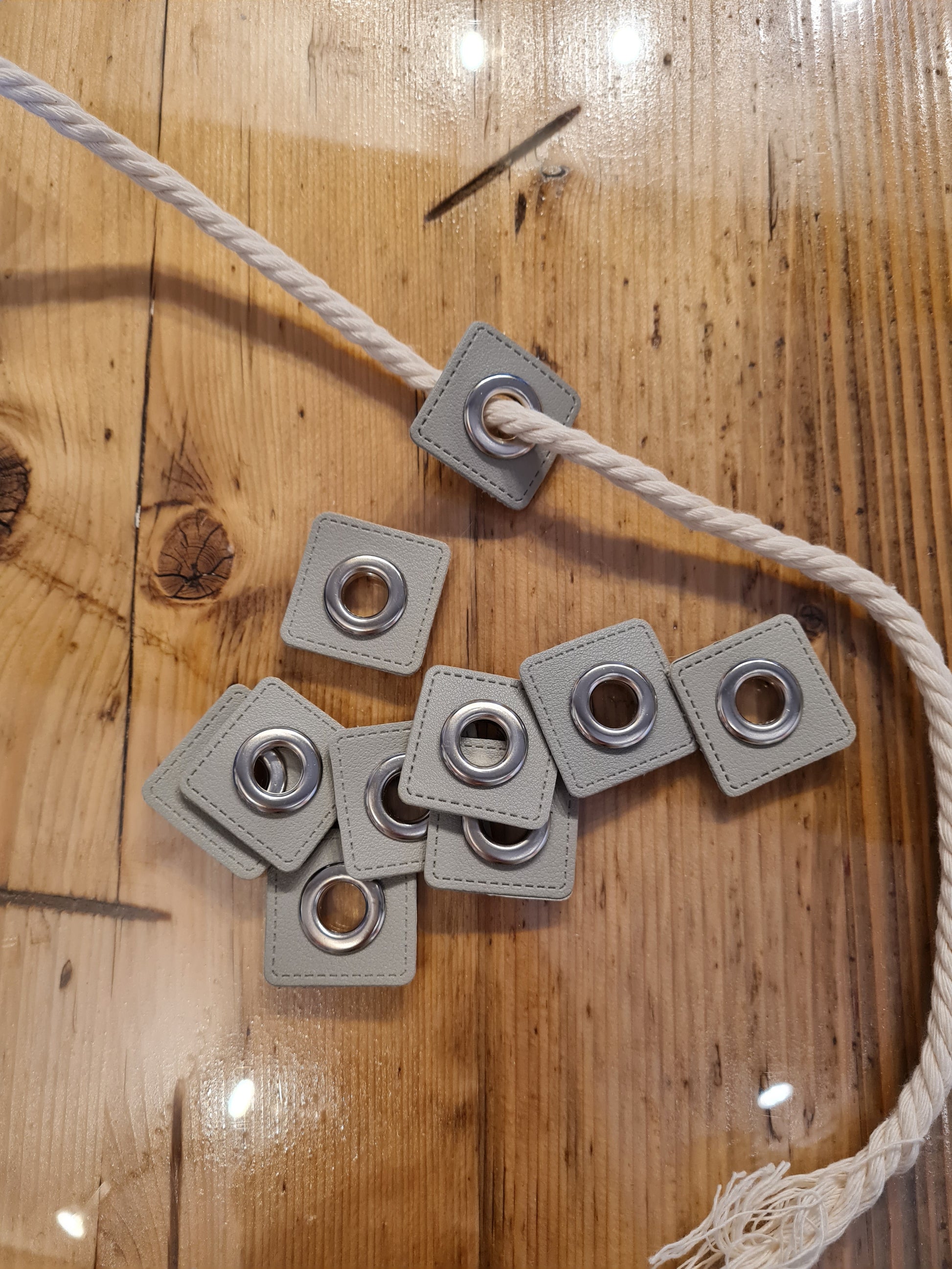 Ösen Patches für Kordeln Lederimitat *Grau*
