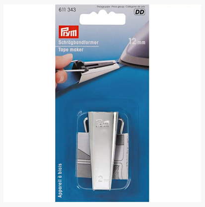 Die praktischen Schrägbandformer von Prym ermöglichen ein perfektes Formen beliebig langer Schrägbänder zum Einfassen jeglicher Stoffkanten oder auch von Patchworkdecken. Durch das Zuschneiden der Stoffstreifen im Winkel von 45 Grad zum Fadenlauf des Stoffes wird das Schrägband elastisch und lässt sich auch in Kurven perfekt verarbeiten. Nachdem die Stoffstreifen zugeschnitten und miteinander verbunden sind, wird der Stoff in die breite Öffnung des Schrägbandformers eingeführt und durchgezogen. Auf der flachen Seite des nützlichen Helfers lässt sich der tadellos gefaltete Schrägstreifen herausziehen und kann direkt mit dem Bügeleisen geglättet werden. So gelingt das Schrägband schnell und zuverlässig und kann für die weitere Verwendung einfach aufgerollt werden.