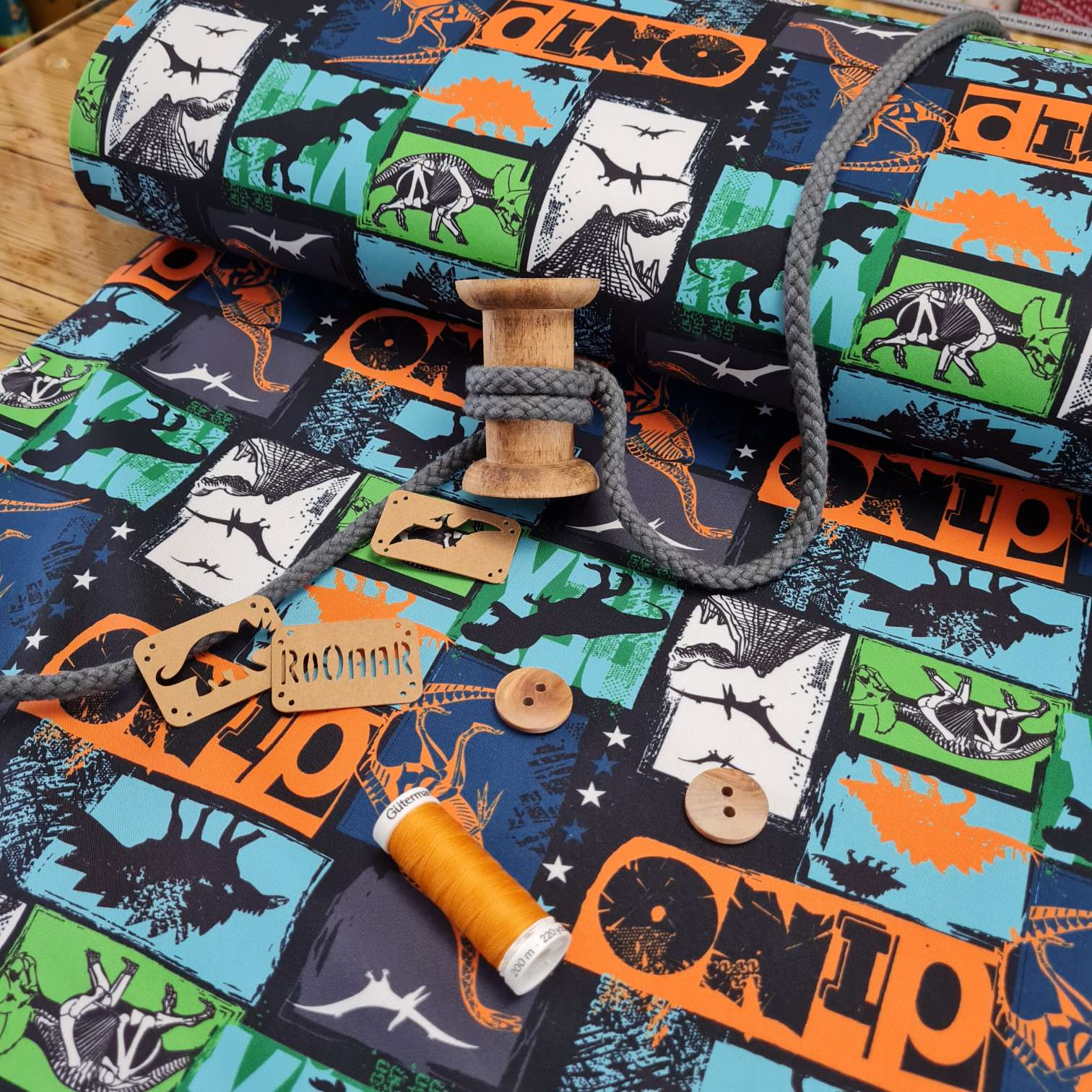 Reststück 1,4 m - Softshell | Dinosaurier | Bunt